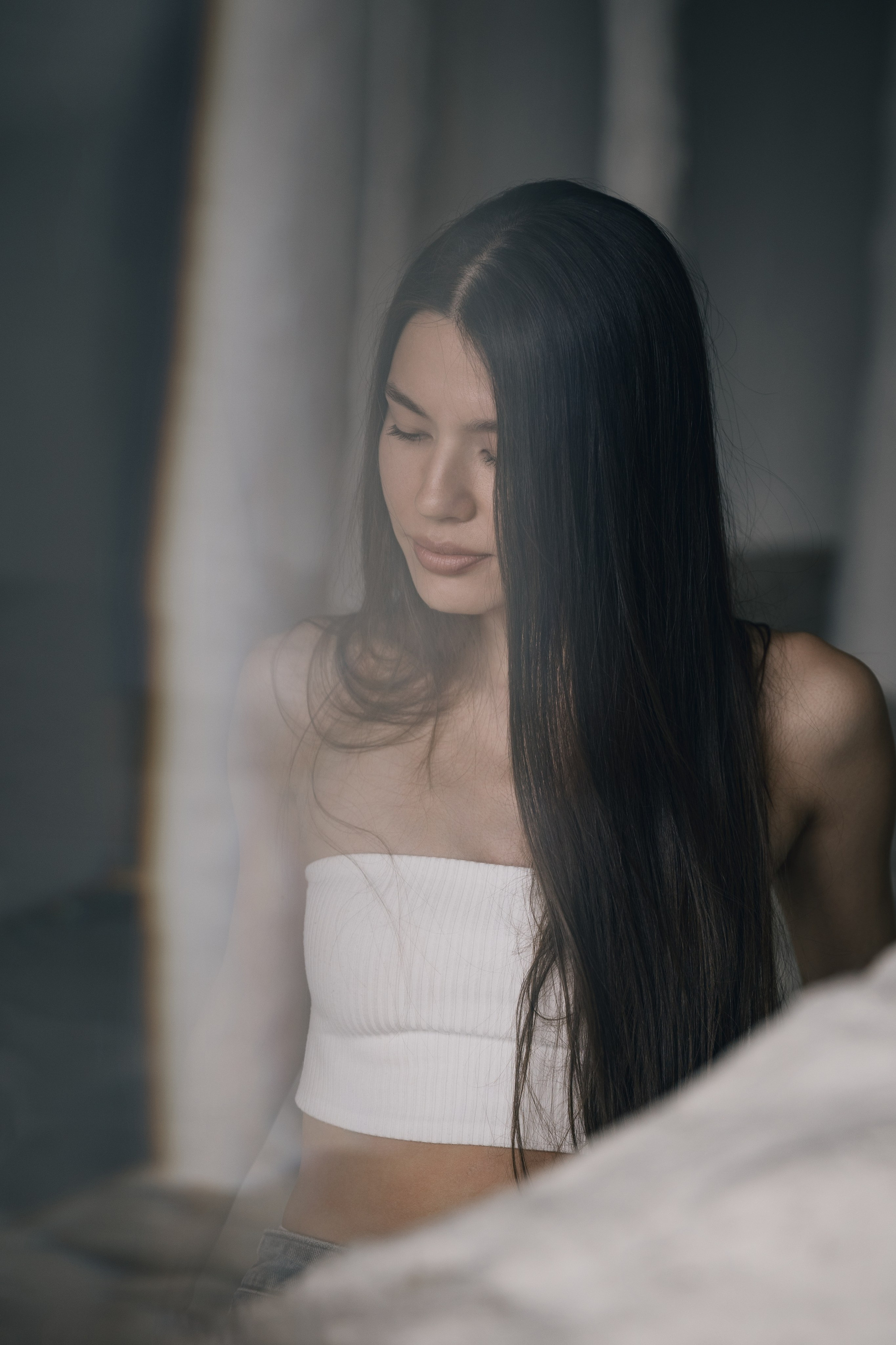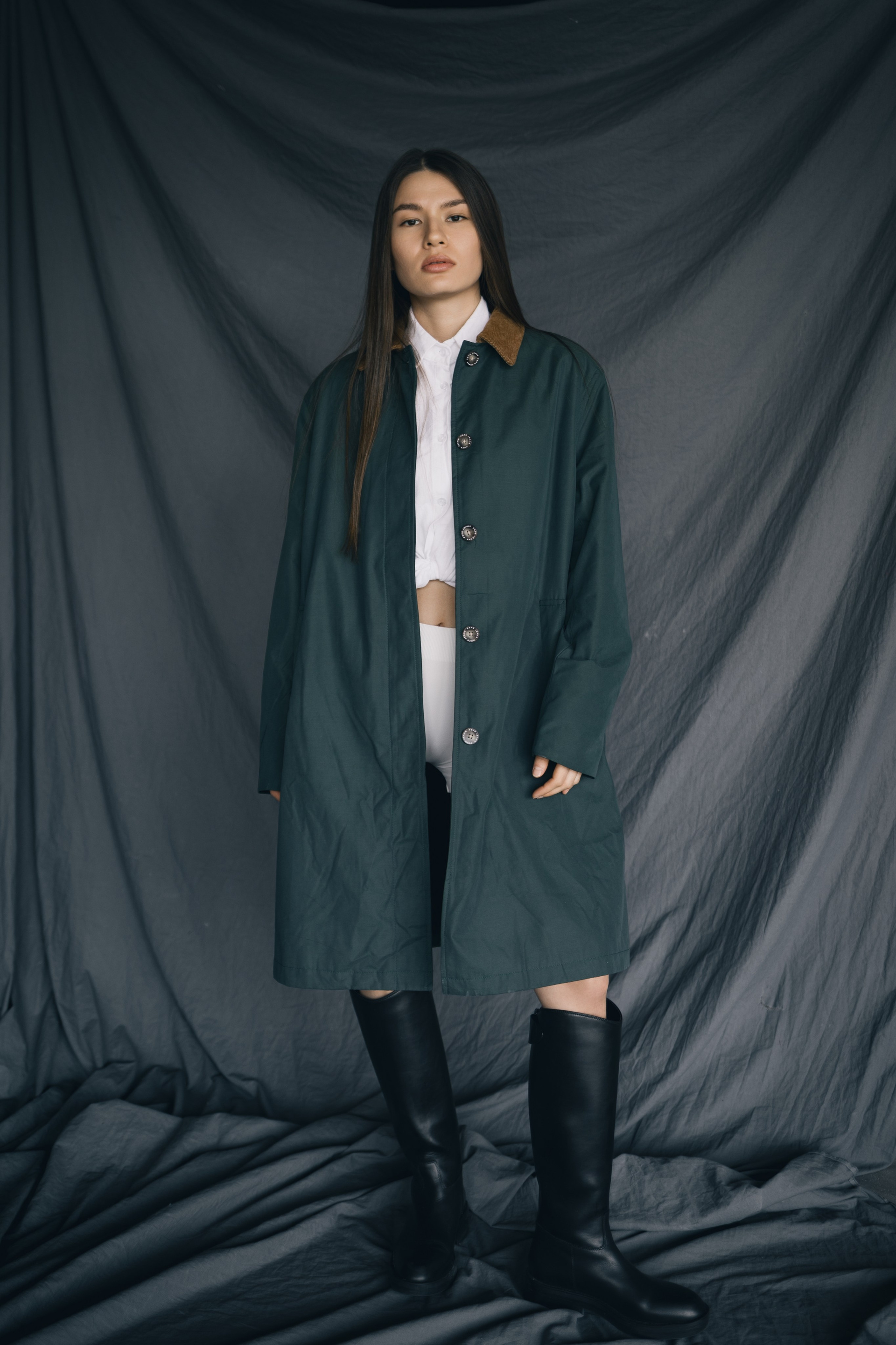 Начали с спокойного портретного формата без позирования.Когда появилось доверие к камере, перешли к более выразительной fashion-съёмке —уже без попытки «держать лицо».